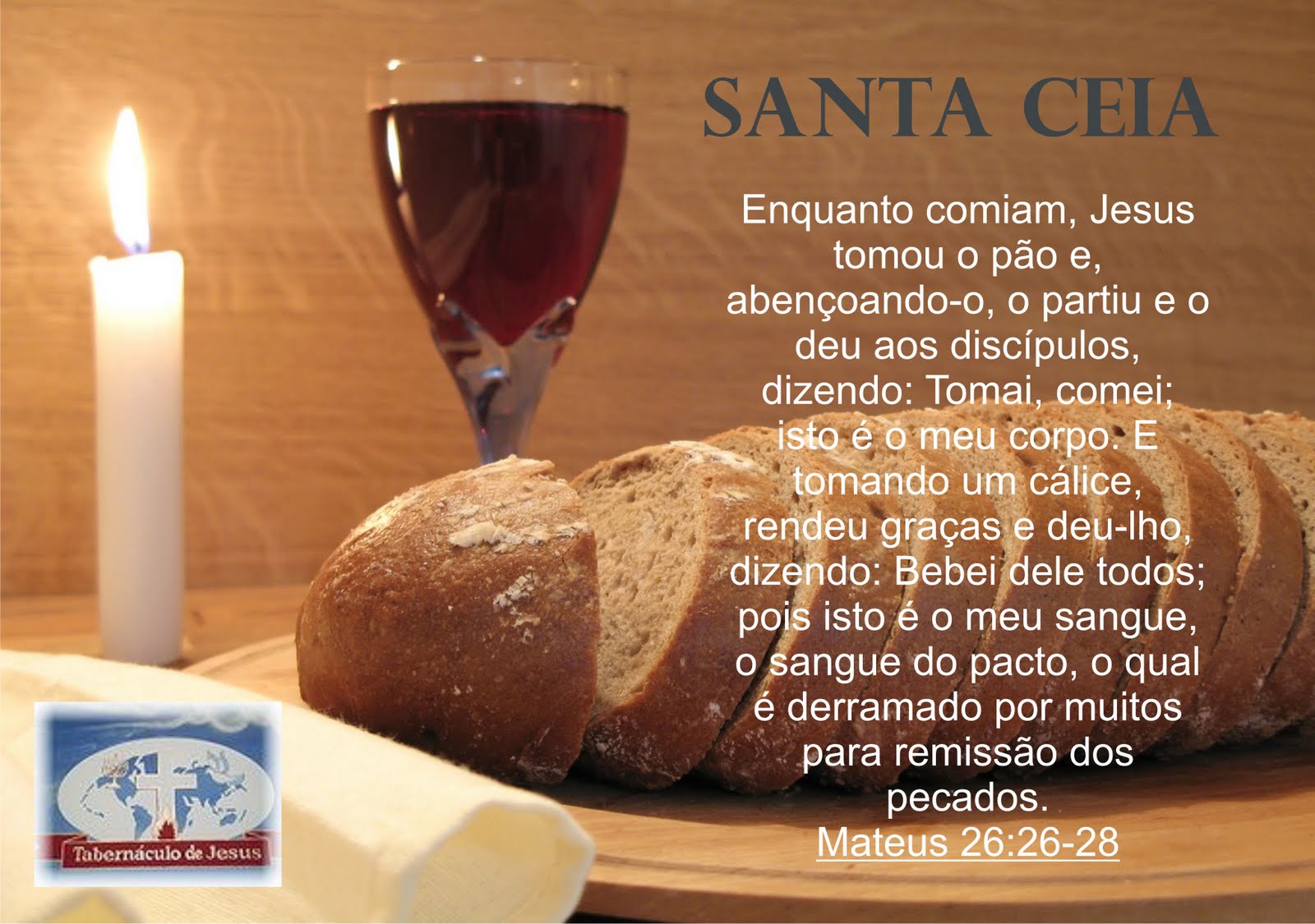 Versículos sobre a Ceia do Senhor. A Ceia do Senhor foi instituída por Jesus para lembrarmos seu sacrifício na cruz. O pão simboliza seu corpo, que sofreu muita dor, e o vinho seu sangue, que foi todo derramado por nós na cruz. Jesus morreu para nos libertar da lei do pecado e nos dar uma vida nova. Quando alguém aceita Jesus como seu.