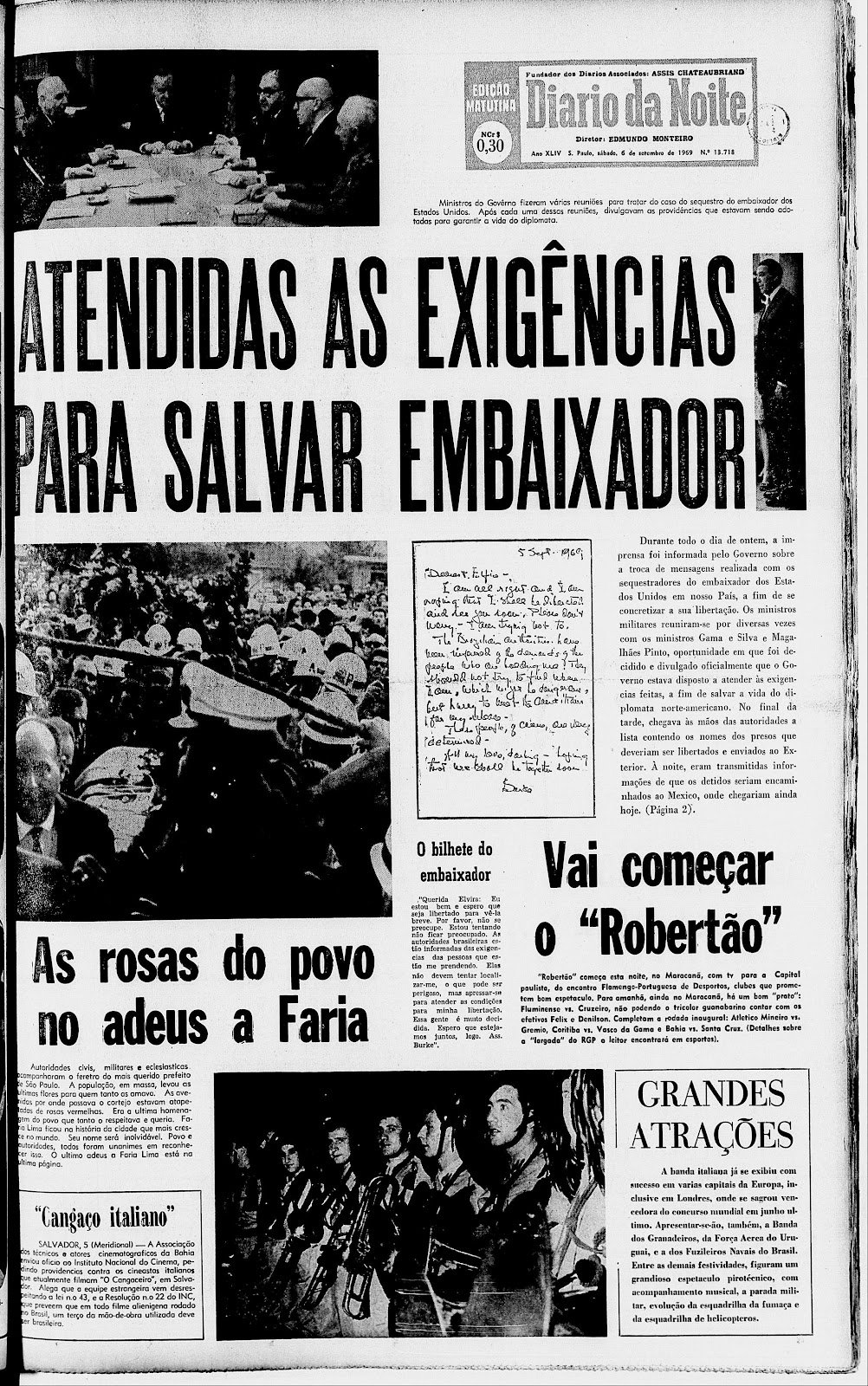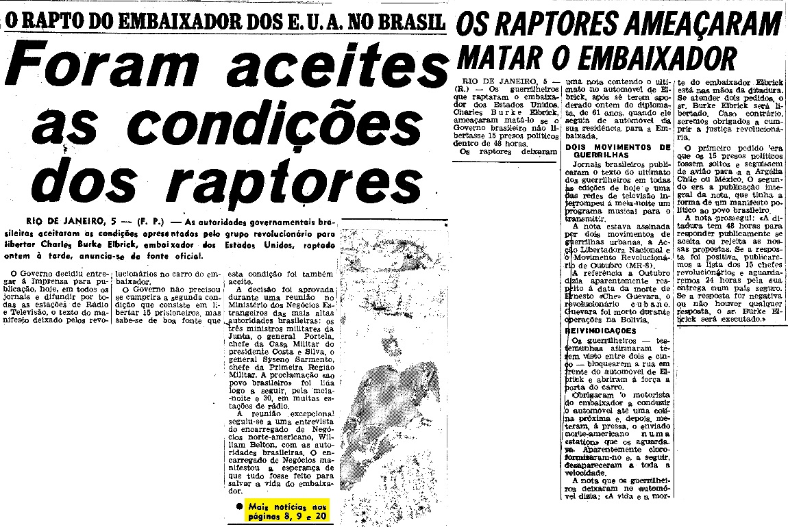 PUBLICIDADE. O dia 04 de setembro de 1969 ficou marcado, no Brasil, pelo sequestro do embaixador americano Charles Burke Elbrick (1908-1983), no contexto da radicalização da esquerda.