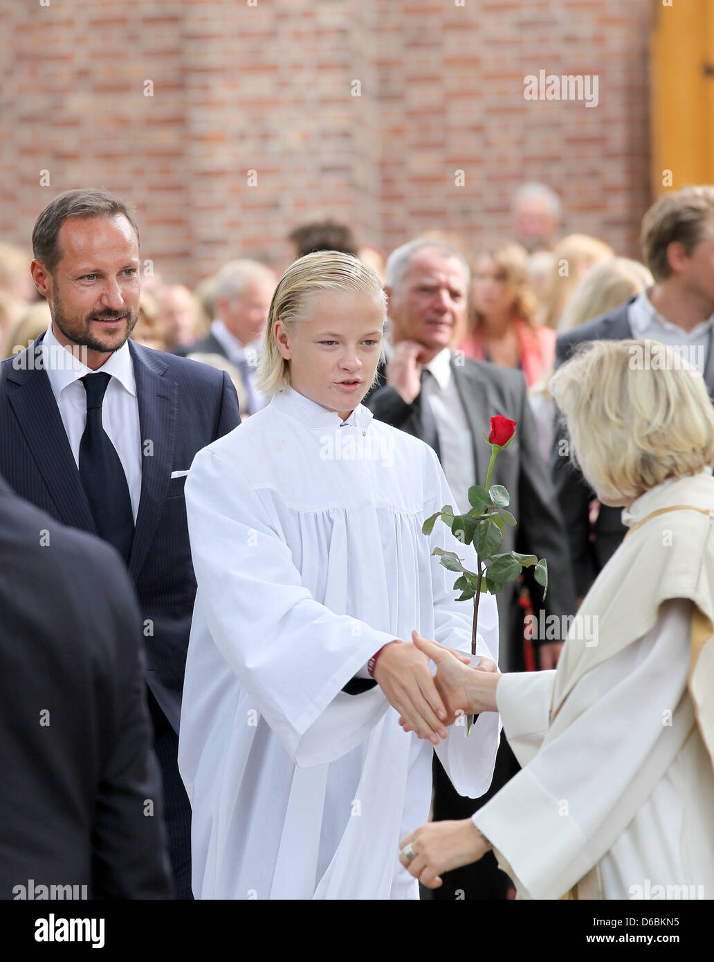 Haakon e Mette-Marit se casaram em 25 de agosto de 2001 em Oslo. A cerimônia durou uma hora e a noiva chorou durante toda a cerimônia. Em uma quebra de tradição, o noivo esperou do lado de fora da porta da igreja, pois Mette-Marit queria andar pelo corredor ao lado de Haakon em vez de no braço de seu pai. O bispo de Oslo, Gunnar Stålsett.