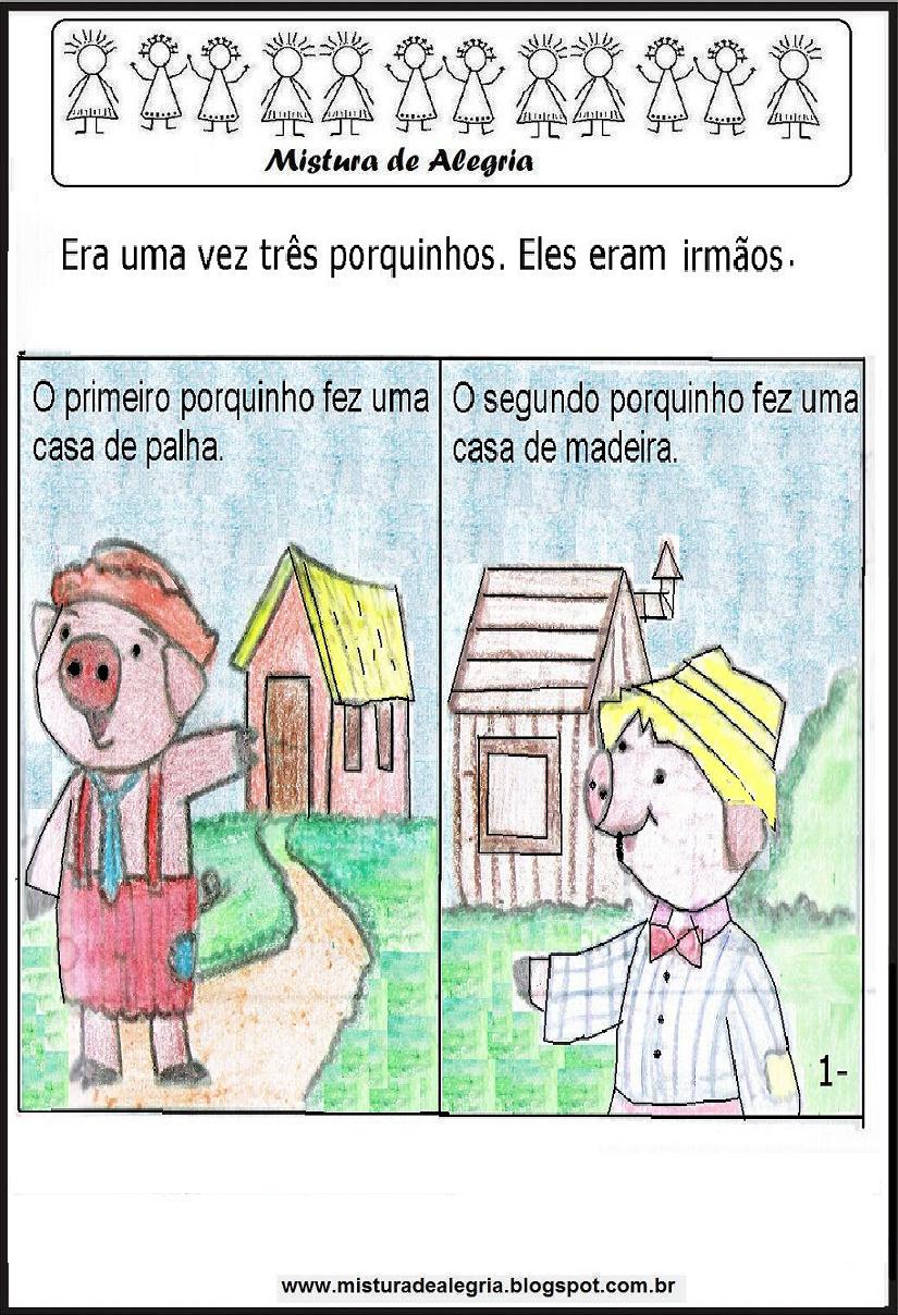 HISTÓRIA DOS TRÊS PORQUINHOS,LIVRO PARA IMPRIMIR E COLORIR Mistura de Alegria
