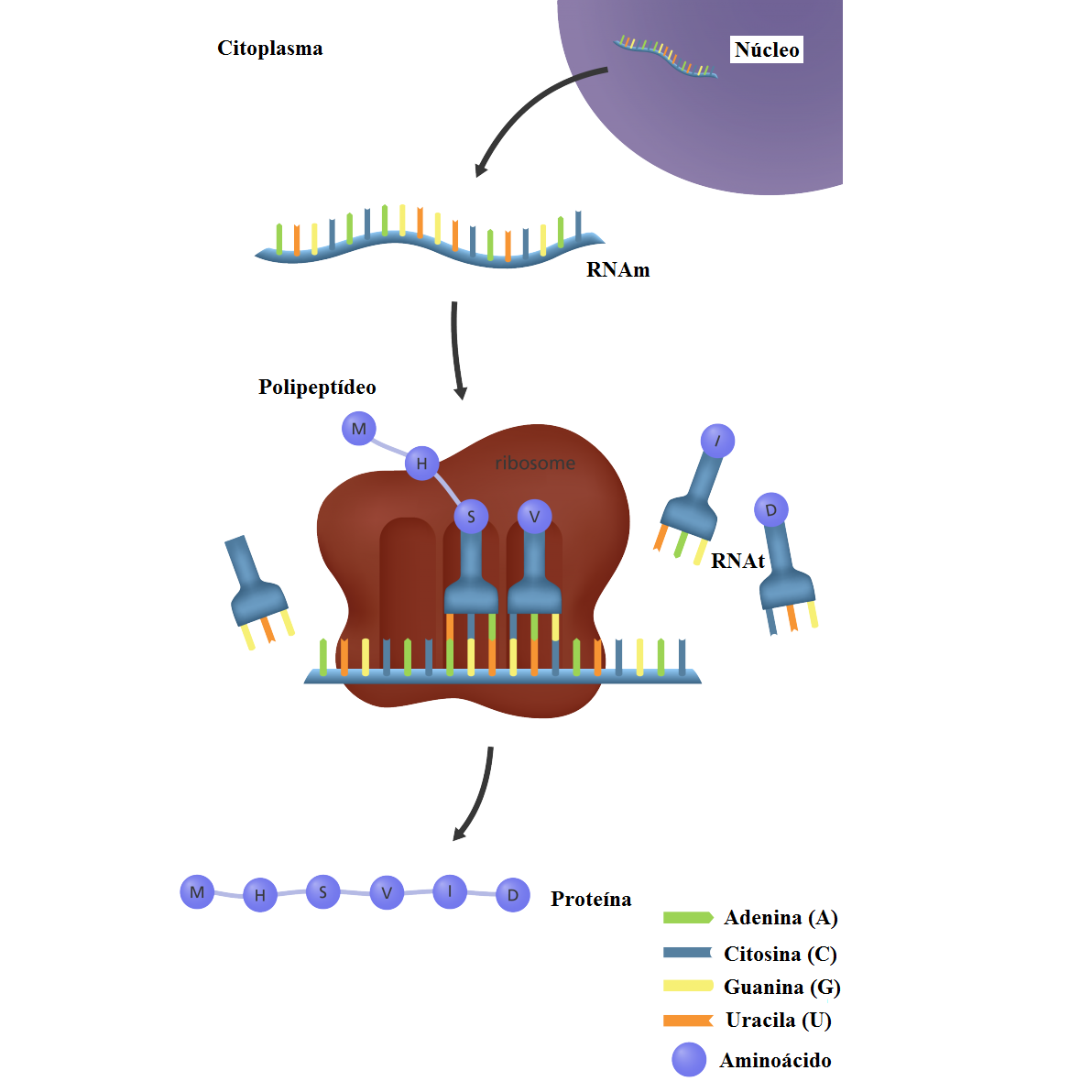 Informação de um gene é usada para construir um produto funcional em um processo chamado expressão gênica. Um gene que codifica um polipeptídeo é expresso em duas etapas. Nesse processo, a informação flui do DNA →. proteína, uma relação direcional conhecida como dogma central da biologia molecular.