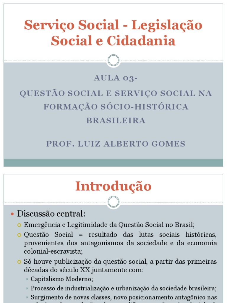 Aula 03 Questão Social e Serviço Social No Brasil Sociologia Trabalho social