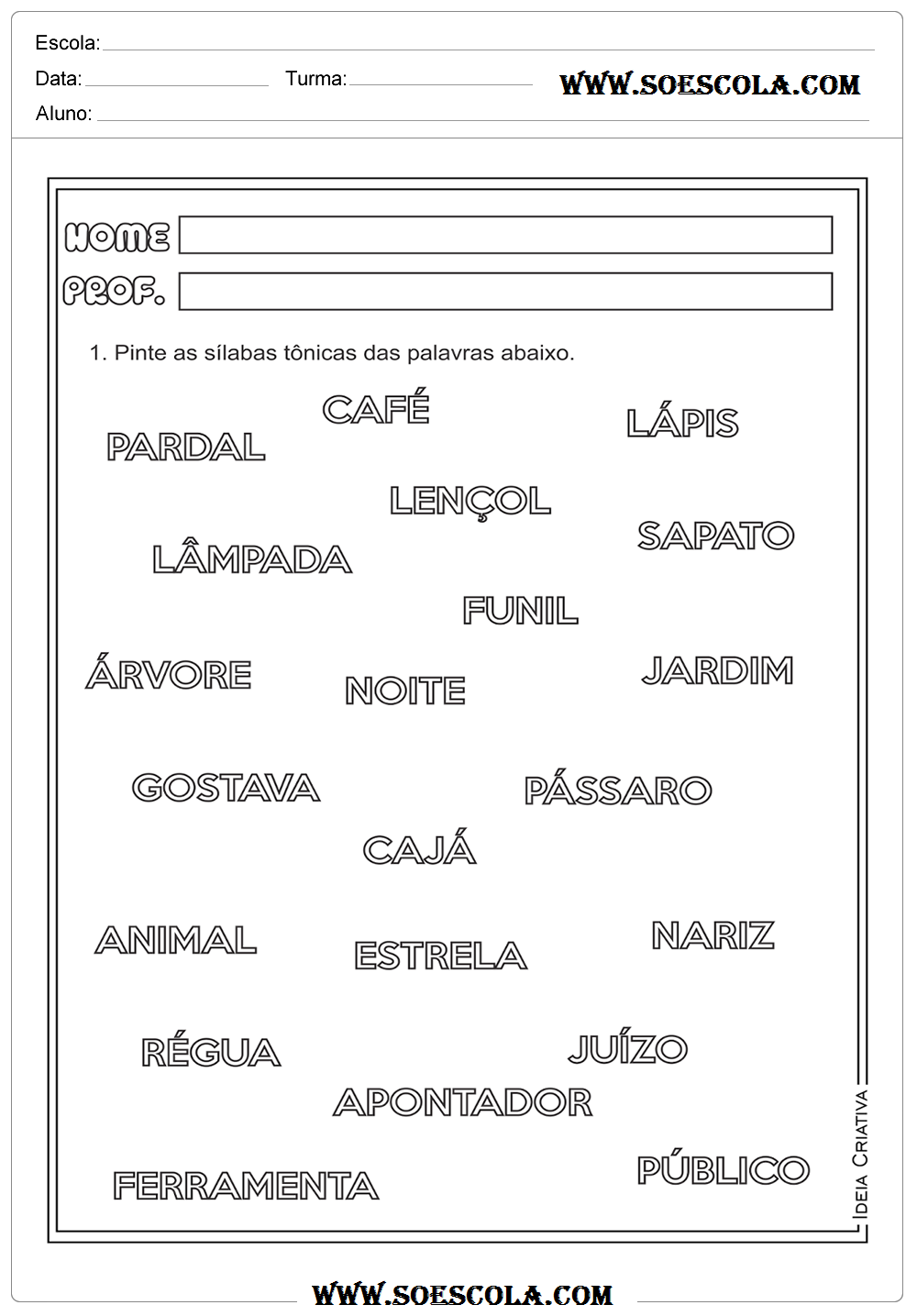 Atividades Sílaba Tônica 3 Ano Fundamental EDUCA