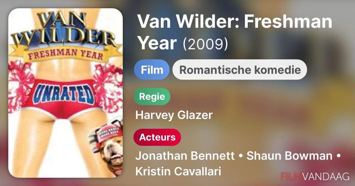 Van Wilder: Freshman Year 2009. Comedy; Released: 2009. 5.4 / 10. Rated: Director: Harvey Glazer. Cast: Jonathan Bennett, Linden Ashby, Kristin Cavallari, Nestor Aaron Absera, Kurt Fuller. It is freshman year at Coolidge College and Van Wilder is ready to party. To his dismay, all the girls have taken a vow of chastity and the dean rules the.